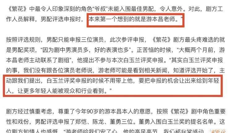 主动让奖扶携后辈:2024年5月,他主动相关了《似锦》剧组,淡薄不参与第29届上海电视节白玉兰奖的评奖申诉。